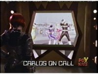 Red leaps in with a punch, Datascammer flashes his eyes, causing lights to flash around the Ranger. |