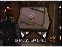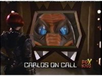 The Rangers roll out of the way, then whip out their Astro Blasters and fire upon Datascammer, sparking him, but merely angering him into firing an eyebeam. |