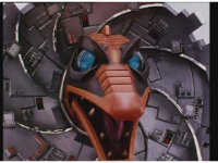 Datascammer appears pleased, then rushes over to inspect the damage, finding no trace of the Mega Voyager. He then suddenly turns and looks upward, seeing Winged Mega Voyager flying in and diving down. |