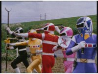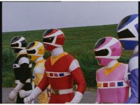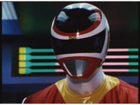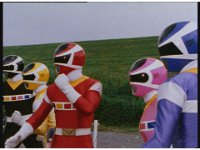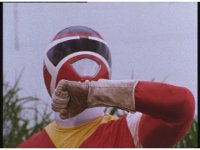 Psycho Red sparkily cuts through each of the Rangers, until he reaches Red, who puts up a bit of a fight back. |