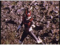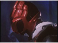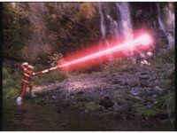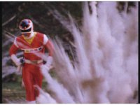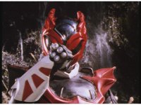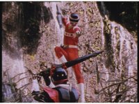 Psycho Red rushes over to the downed Ranger, puts his sword to his neck, and talks. Suddenly the Psycho looks up, prompting Red to fire his Astro Blaster at him, bursting him down, before Red sees what he saw. |