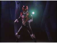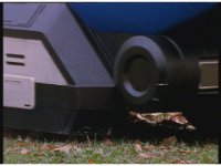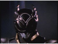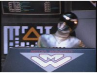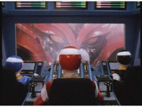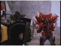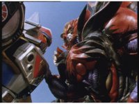 Psycho Red gets up in Mega Voyager's face, peering into the cockpit, Red talking and pointing at him, as he responds, talking to the Rangers within until he suddenly warps out of there, leaving the Rangers baffled. |