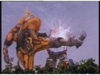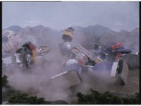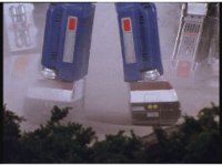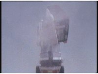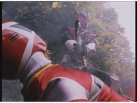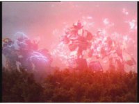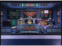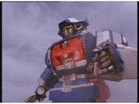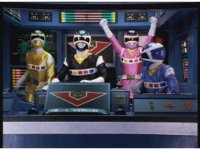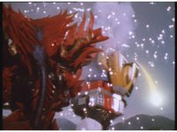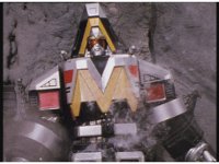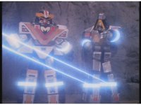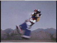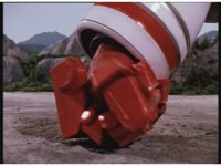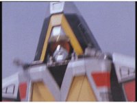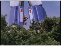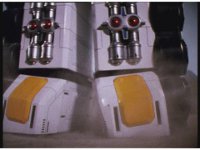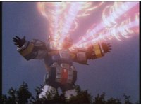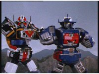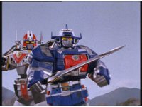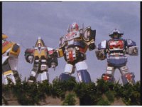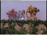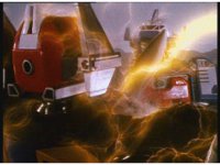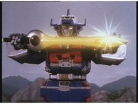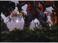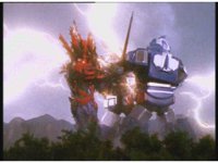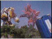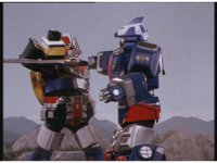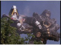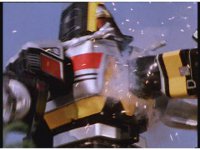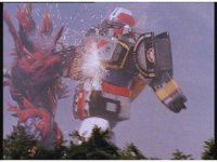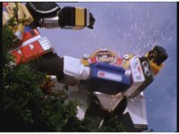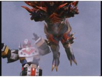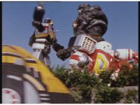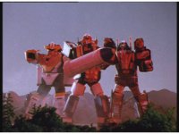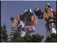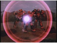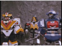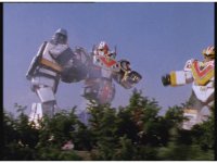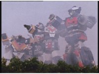 The three Megazords rush forth into action, zoom in on a non-threatened Psycho Red, before Mega Voyager suddenly stops in its tracks, spins around wildly, then stands still. |