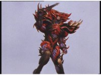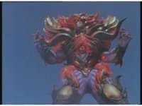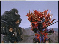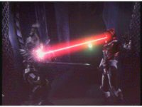 Continued, Psycho Red twirls his Psycho Sword around and sparkily slashes Ecliptor. Ecliptor then talks and points his sword at him, but the Psycho fires eyebeams at him, bursting him down, as he points his sword forth at the downed General. |
