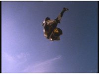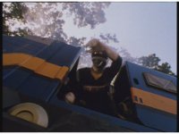 Sharp zoom in on Blue in the cockpit, jerking his arms and talking abruptly. |