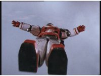 Zoom in on Red in his cockpit, nod-talking, raising a fist, twice, then grabbing controls, causing Mega V1 to clench a fist, punch the ground, sit up, stand up, and take off skyward. |