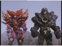 Psycho Black & Psycho Red slowly walk forth, menacingly. |