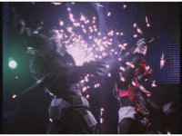 Zoom in on Yellow, talking and shaking her head. Pink gets up and talks some more, Blue talks and looks about, then finally Black talks and grabs controls. |