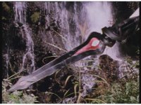 Astro Megazord's Saber forms in a flash of golden light in its hand. |