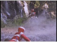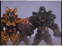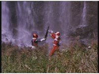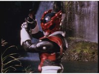 The Psycho trio walks along beside a stream beneath the Mega V Zords, then stop and watch. |