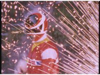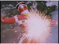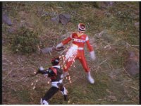 Psycho Red is about to attack again, when Psycho Black stops him, they chat for a bit, then Psycho Red presses on, firing an electricity blast, spark bursting Astro Megazord. |