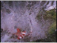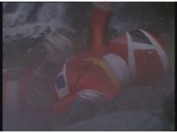 Psycho Red sparkily slashes Red some more, eventually knocking him into the water. Red gets up and fires a red laser from his Spiral Saber tip at the Psycho, who blocks and returns the energy to him explosively. |