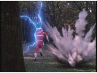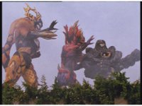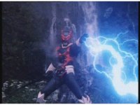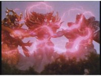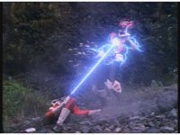 The Psychos regroup, where Psycho Red reaches out and grabs the other two, electricity crackles between them as he flashes with power, soon spewing forth energy flames at the four Megazords, causing them to suddenly fling backwards, falling flat on the ground. |