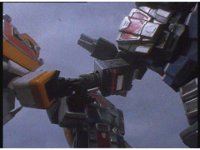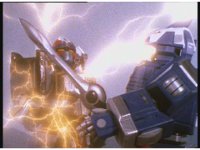 Psycho Red sparkily slashes Mega Voyager, who stops his blade and tries to talk to him, but he just slashes it again, says something to it, then slashes one more time, causing a yellow beam to fire out, discharging Psycho Yellow roughly down to the ground. |