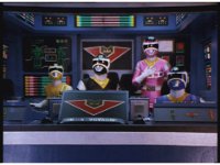 Black works the controls in his cockpit, Blue nod-talks in his, Yellow nods in her's, and Pink flips a switch and nod-talks in her's. |