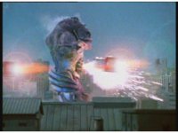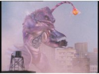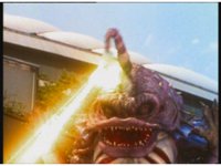 Jakarak shoves Seymour down, he rolls right back up and fires his own dangle bulb beam forth, blasting Jakarak down for a moment, but he gets up, talks, then streak-aports forth, causing an explosion around Seymour . |