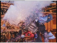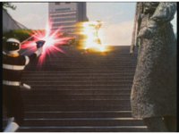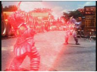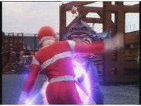 Jakarak suddenly rises up, Seymour talks, then fires bolts forth that spark burst the Rangers down, Red gets up and nod-talks, Yellow does too, Seymour talks a little, helplessly. |