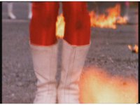 Red races forth in dramatic slow motion through the flames. |