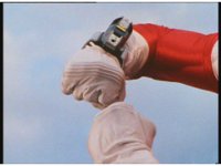 Zoom in on Red in the cockpit, raising his Battlizer then pressing it. |