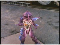 Seymour talks and widens eyes, before glowing red and materializing off of Jakarak's gut, onto the ground roughly nearby. |