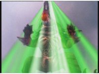 Cuts follow-ups of both Jakarak & Seymour firing beams that turn a barrel to glass. |