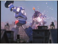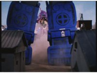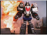 Cuts follow-up of Megazords flying up. |