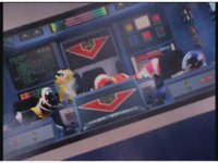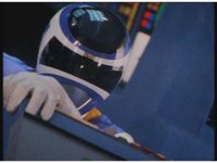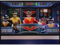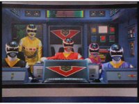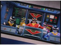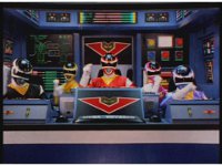 Close on each of the Rangers in the tilted cockpit, looking forth. |