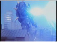 Cuts follow-ups of monster standing, then sparkily striking MV. |