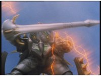 Cuts follow-ups of MV on ground, then more cockpit shots, then a lot more fighting between monster & MV including a sword stabbing of MV. |