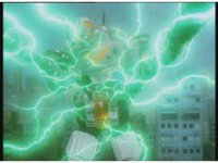 Mega Voyager gets fried with green electricity, sparking the cockpit. |