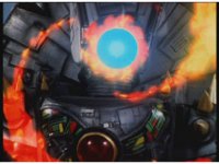 In a flash of energy and electricity, Tankenstein forms his sword. Mega Voyage reacts, then gets sparkily slashed until it falls down, then pan up Tankenstein as he stands victorious. |
