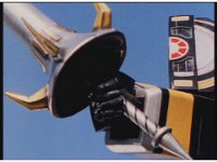 Red pulls trigger, V3 Missile arrives, Mega Voyager readies it, Red does the Z pattern control stick jerk, then the Megazord fires the V3 Missile. |