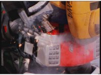 Tankenstein continues sparkily slashing the one-armed (shh?) Mega Voyager. |