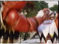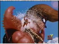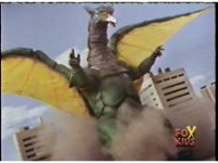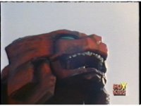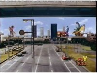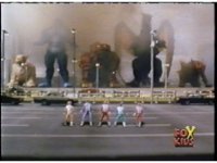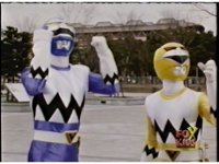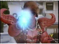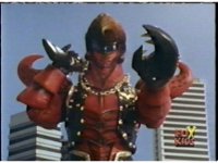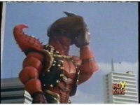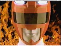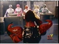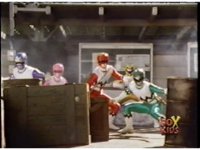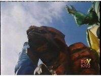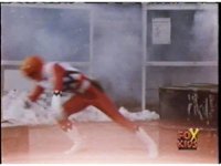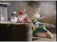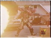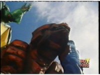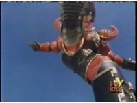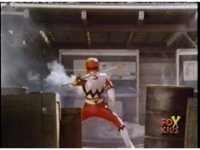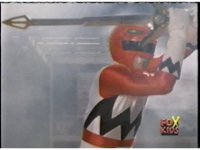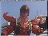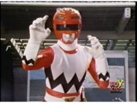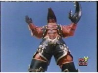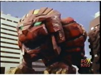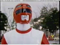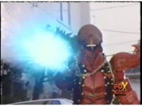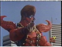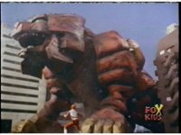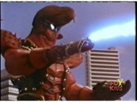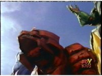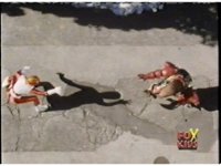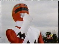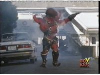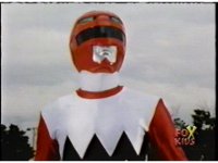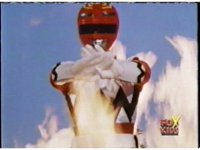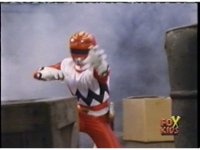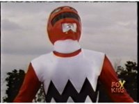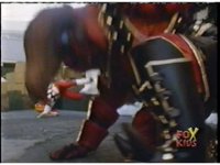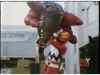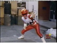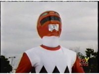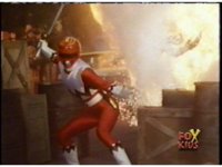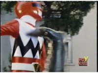 Red and Radster grab each other, then break off, switching positions, before the monster strikes, the Ranger blocks then grabs his face and flips him over. Radster kicks back, knocking Red away as he gets up. |