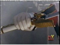 Red poses, then unsheathes his Quasar Saber, which glows golden briefly as he whips it about, then holds it forth. Radster charges at him. |