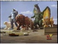 As the smoke clears, the five Galactabeasts become visible, pan across three of them, as the Rangers watch in awe. |