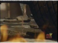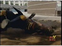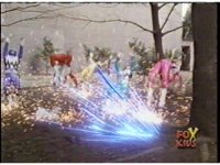 The Rangers race up and face Quakemaker again, he spews forth spikes at them, they flip over as the ground sparks, the spikes sinking into the soil. |