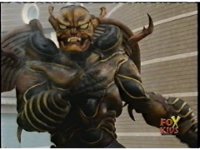 Quakemaker talks again, when he suddenly turns, seeing the Rangers heading his way. They pause, Red talking, the monster responds. |