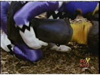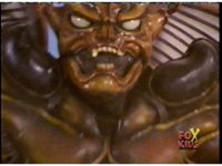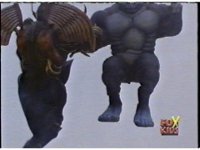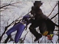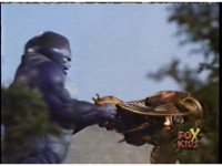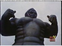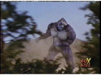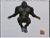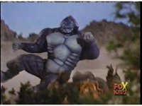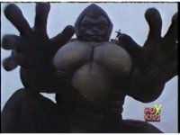 Cuts follow-ups of him slamming him into the ground, Gorilla posing, then doing a flying kick into monster. |