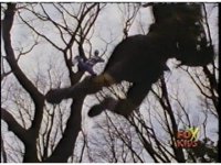 Gorilla Galactabeast comes jaunting along through the forest, then leaps up, grabs Quakemaker and carries him into the air. |