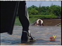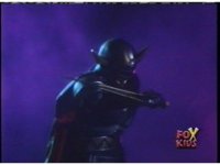 Fishface looks up, as Magna Defender leaps at him, sparkily slashing him on the way down, knocking him over. Magna Defender approaches with his sword held forth, when Fishface spots someone to our right. |