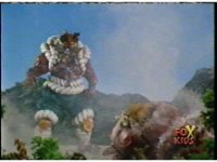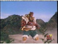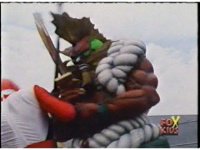 Fishface watches the Galactabeasts, patting his gut, when suddenly, the whole area starts quaking, shaking up the monster and the Rangers. |