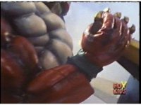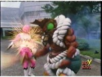 Fishface charges forth to meet Torozord in the middle, sparkily grabbing his horns, getting pushed back by Torozord, then pushing back, then getting pushed back. |