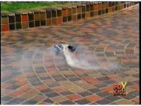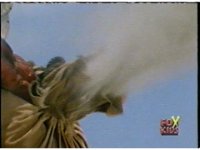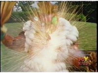 Cuts before he readies bag, cuts follow-up of him firing sand at MD, who leaps up. |