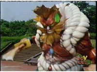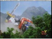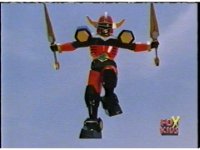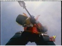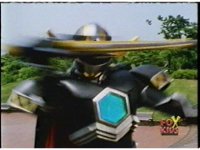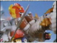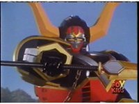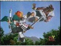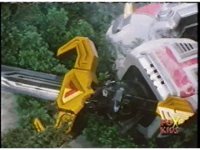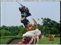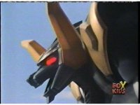 The head and horns pop out of the Lion section as it floats up, Wild Cat & Lion becoming arms, as all five Zords come together to form the Galaxy Megazord, with its saber forming in a crackle of electricity. |