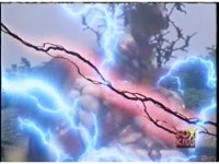 Crackling with electricity, Galaxy Megazord topples, energy streaking away from it before leaving a massive explosion behind. |