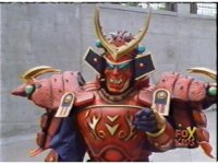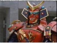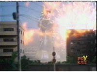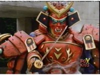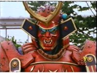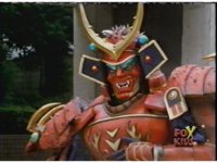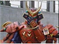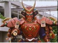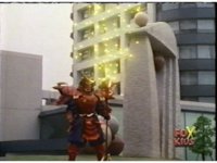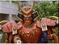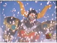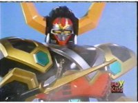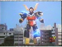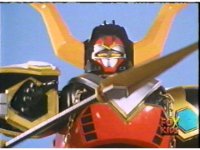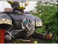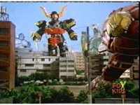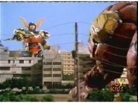 Torozord fires eyebeams down upon Magna Defender, causing him to grow gigantic and transform into Mega Defender mode. |