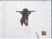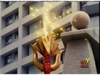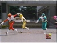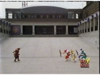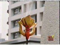 Destruxo talks, then rushes off. The Rangers talk, then rush off, following the monster as they dash through the windy plaza. |