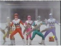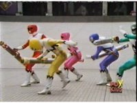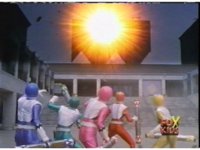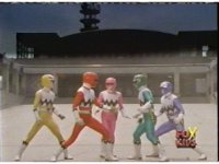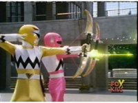 The Rangers pull out their Quasar Launchers and aim the forth, Pink nod-talking. |