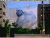 Gorilla beats his chest, hops over some buildings, then grabs Defender Torozord, only to get shoved off. |